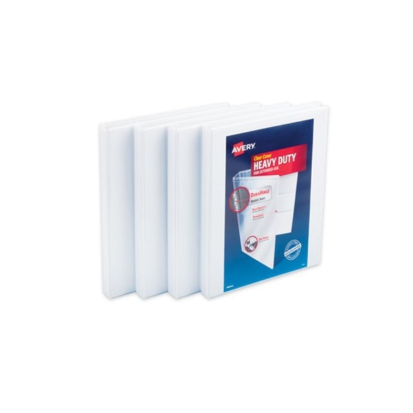 With this Heavy-Duty Nonstick View Binder you get one-touch operation and the durability required for everyday use. Nonstick material won't lift ink or toner off printed pages. Tear-resistant DuraHinge design is stronger and lasts longer. DuraEdge feature makes the sides and top more pliable, providing greater split resistance. Deeply textured film offers a smoother finish and features a linen pattern for a high-quality look and feel. Four clear, interior pockets provide extra storage space. Wider front and back panels fully cover standard dividers and sheet protectors. Slant rings have a higher page capacity when compared to the same size round rings. Pages lie flat with back-mounted rings exposed rivets on back. Customize your title page using free templates and designs at Avery Design & Print Online. Slant RingsHolds more sheets than the same size round rings. Binder Type: Ring; Binder Style: View; Binder Size Capacity: 0.5in; Binder Sheet Capacity: 120.