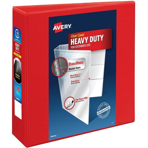 This Heavy-Duty View Binder with One Touch rings is perfect for extended use. From everyday referencing to classroom notes and home business use, this binder's strong enough to handle them all. DuraHinge design is stronger, lasts longer and resists tearing. The DuraEdge feature makes the sides and top more pliable to resist splitting. Deep-texture film offers a smoother finish and features a linen pattern for high-quality look and feel. Simply pull the lever to open the rings for adding, replacing and removing pages. Then push to lock the rings in place. Even when filled to its 670-page capacity, this binder still has four stacked pockets for a bit of extra space inside. Customize the cover with free, easy-to-use, online templates and designs.