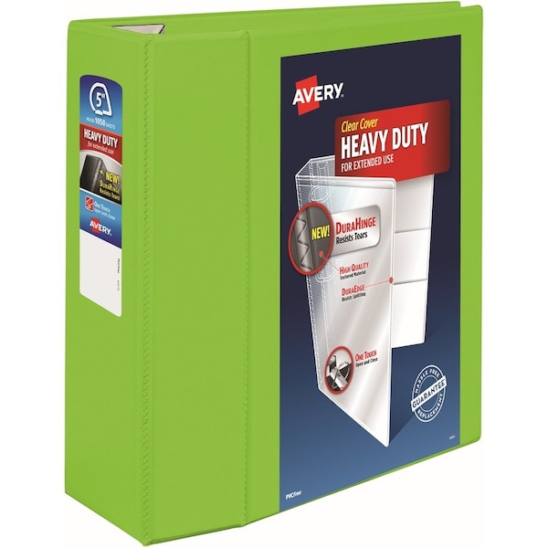 This Heavy-Duty View Binder with One Touch rings is perfect for extended use. From everyday referencing to classroom notes and home business use, this binder's strong enough to handle them all. DuraHinge design is stronger, lasts longer and resists tearing. The DuraEdge feature makes the sides and top more pliable to resist splitting. Deep-texture film offers a smoother finish and features a linen pattern for high-quality look and feel. Simply pull the lever to open the rings for adding, replacing and removing pages. Then push to lock the rings in place. One Touch rings open and close with ease and keep pages secure. Even when filled to its capacity, this 5" binder still has four stacked pockets for a bit of extra space inside. Wide front and back binder panels fully cover standard dividers and sheet protectors. Customize the cover with free, easy-to-use, online templates and designs.