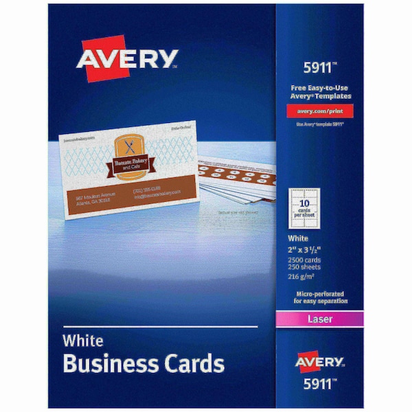 Business Cards,2 In. x 3.5 In. Sure F,PK2500, Package Quantity 2500