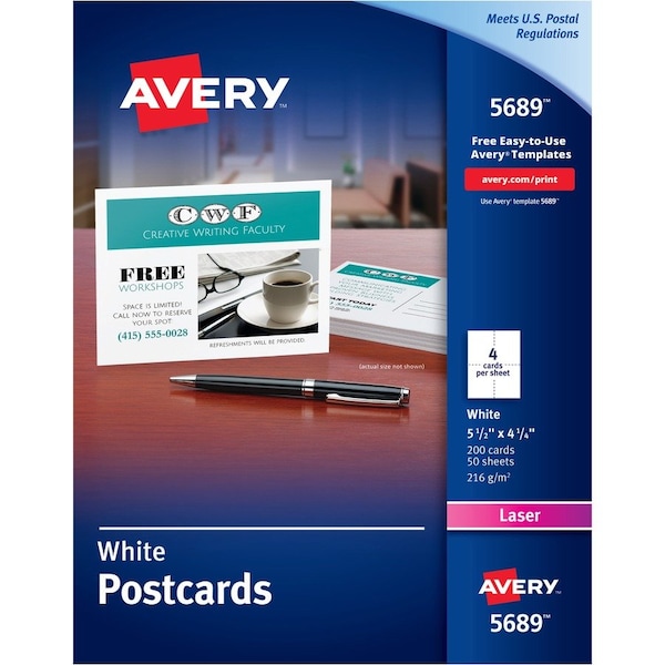 Create invitations, announcements and reminders using laser printers. Heavyweight, letter-size cardstock feeds automatically from a paper tray. Ultra-fine perforations let cards separate easily and cleanly. Avery offers many easy-to-use templates for Microsoft Word and other popular software programs. Weight meets federal postal standards.