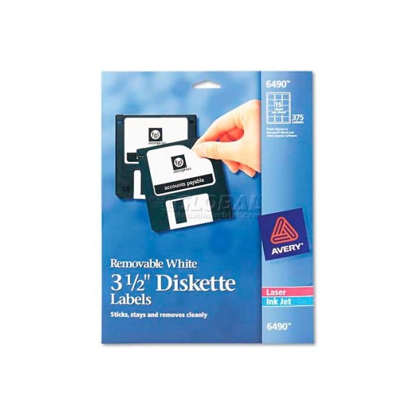 Avery 6490 laser/inkjet 3.5in diskette labels, white, 375/pack works with both inkjet and laser printers. Create labels for all your diskettes with easy-to-use avery online templates and software. 8-1/2 x 11 sheets. For use with: 3.5 diskette. this product arrives to most customers in 2-3 business days.