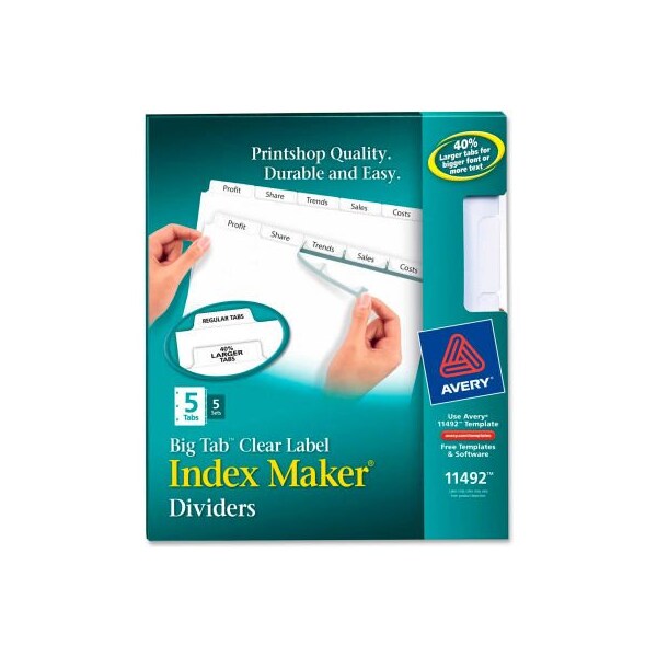 Avery Big Tab Index Maker Clear Label Divider, 8.5"x11", 5 Tabs, 5 Sets, White/White