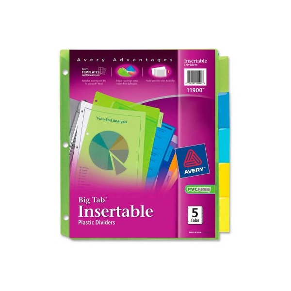 Avery Big Tab Plastic Insertable Divider, Print-on, 5 Tabs, Multicolor/Multicolor