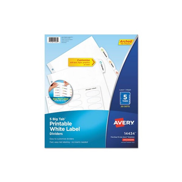 Avery, BIG TAB PRINTABLE WHITE LABEL TAB DIVIDERS, 5-TAB, LETTER, 20PK