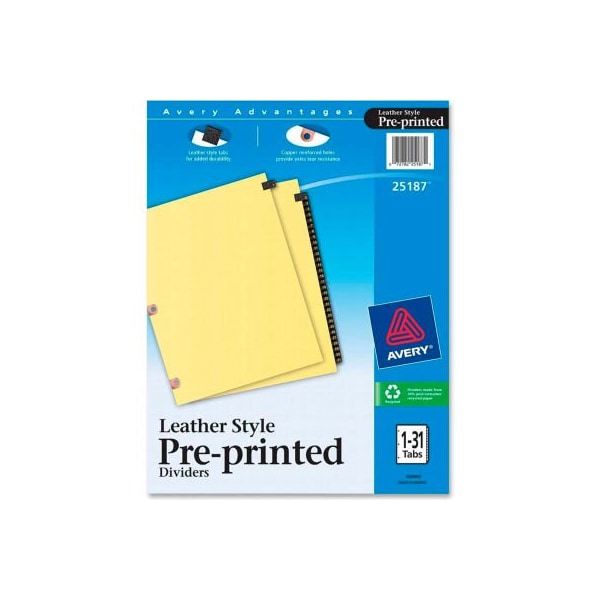Avery Black Leather Daily Tab Divider, Printed 1 to 31, 8.5"x11", 31 Tabs, White/White
