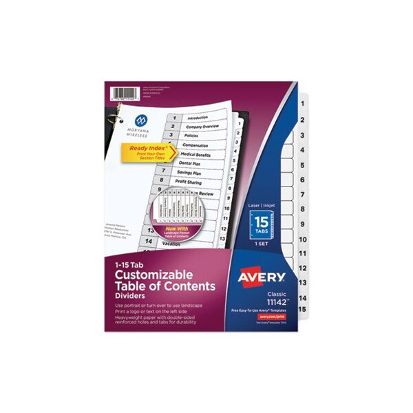 Avery, CUSTOMIZABLE TOC READY INDEX BLACK AND WHITE DIVIDERS, 15-TAB, LETTER