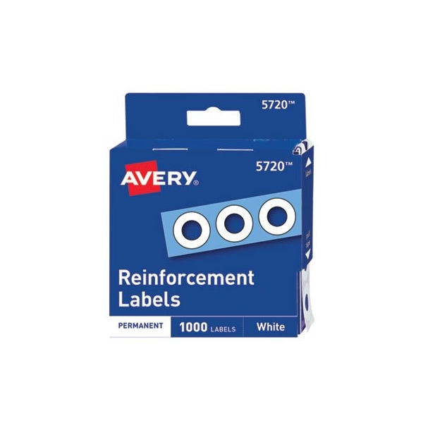 Avery, DISPENSER PACK HOLE REINFORCEMENTS, 1/4in DIA, WHITE, 5720, 1000PK