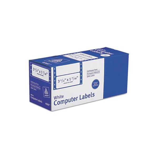 Avery, DOT MATRIX PRINTER MAILING LABELS, PIN-FED PRINTERS, 1.44 X 3.5, WHITE, 5,000/BOX