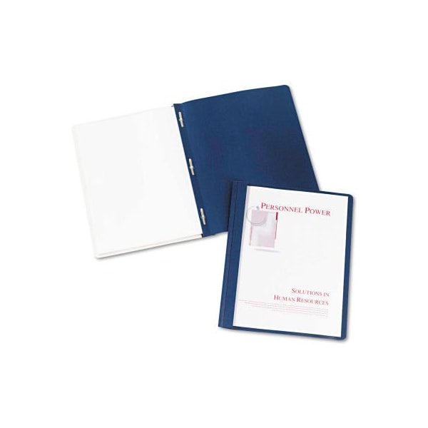 Avery durable clear-front report cover, tang clip, ltr, 1/2" cap, clear/blue, 25/box view customized title page through clear front and set against a colored backing. The coated, textured back cover is durable and resists water and tearing. Polypropylene material won't lift print. Sturdy metal 3-prong fasteners hold up to 20 sheets or 8 1/2" x 11" sheets. this product arrives to most customers in 2-3 business days.
