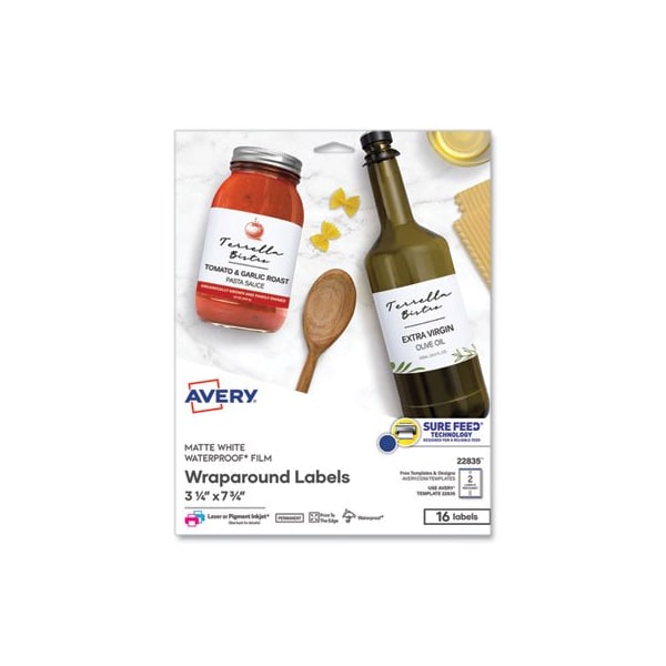 Avery, DURABLE WATER-RESISTANT WRAPAROUND LABELS W/ SURE FEED, 3 1/4 X 7 3/4, 16PK