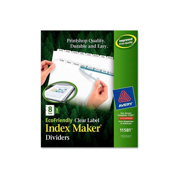 Avery Eco-friendly Index Divider, Print-on, 8.5"x11", 8 Tabs, 5 Sets, White/White