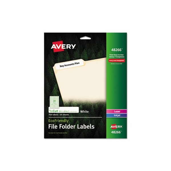 Avery, ECOFRIENDLY PERMANENT FILE FOLDER LABELS, 0.66 X 3.44, WHITE, 25PK