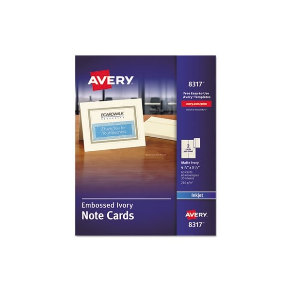 Avery, Embossed Note Cards, Inkjet, 4 1/4 X 5 1/2, Matte Ivory, 60/pk W/envelopes