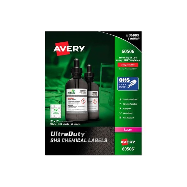 Avery GHS Chemical Waterproof & UV Resistent Labels, Laser, 2in x 2in, 600/Box
