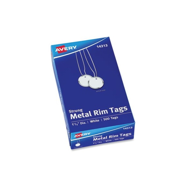 Avery, Heavyweight Stock Metal Rim Tags, 1 1/4 Dia, White, 500/box (Discontinued)