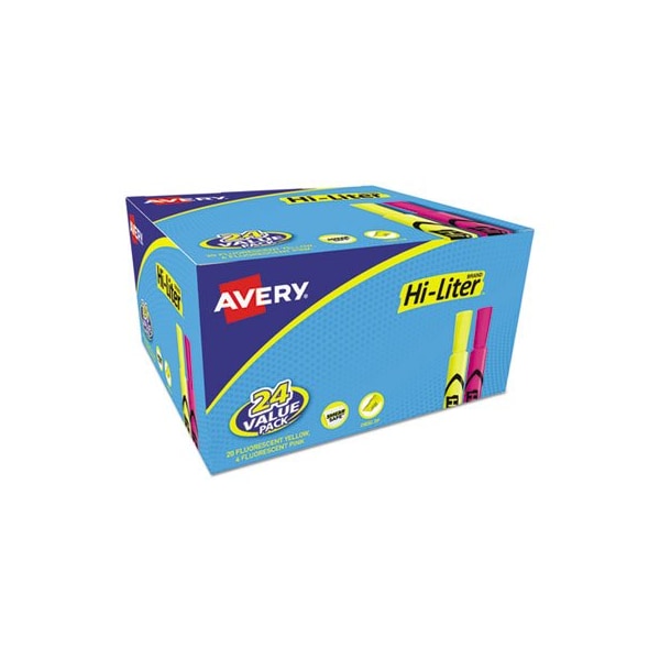 Avery, HI-LITER DESK-STYLE HIGHLIGHTERS, CHISEL TIP, ASSORTED COLORS, 24PK