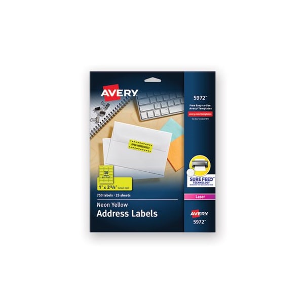 Have something important to say? Customize your white labels with attention-getting images or make your most important messages stand out with high-visibility color labels. Ideal for announcements, priority messages, addressing, color-coding, identification/warning labels and more! Easy to customize with free templates from Avery Design & Print. For laser printers. Now you've got their attention. Laser Permanent Neon Rectangular Labels with Sure FeedEnsuring a reliable printer feed. Shape: Rectangular; Label Size - text: 1 x 2.63; Label Colors: Neon Yellow; Color Family: Yellow.
