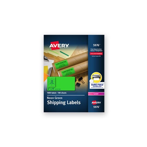 Avery, HIGH-VISIBILITY PERMANENT LASER ID LABELS, 2 X 4, NEON GREEN, 1000PK