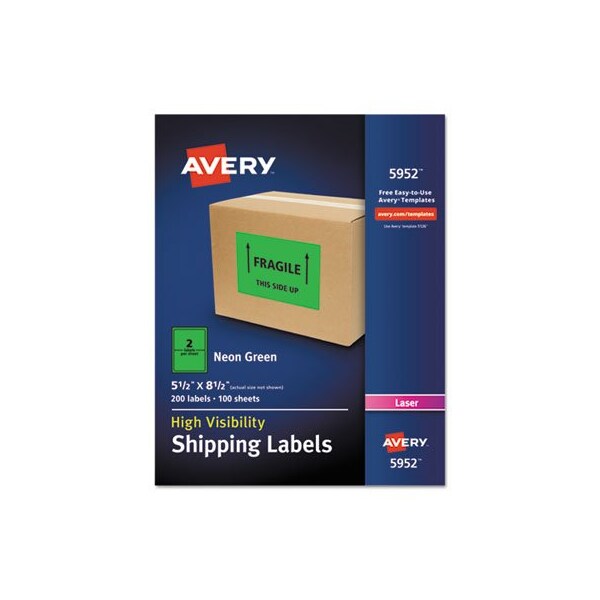 Avery, HIGH-VISIBILITY PERMANENT LASER ID LABELS, 5 1/2 X 8.5, NEON GREEN, 200PK