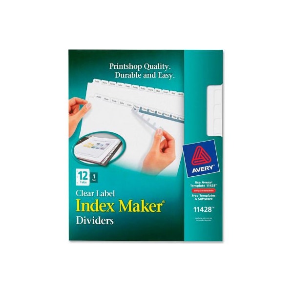 Avery Index Maker Clear Label Divider, Print-on, 12 Tabs, White/White
