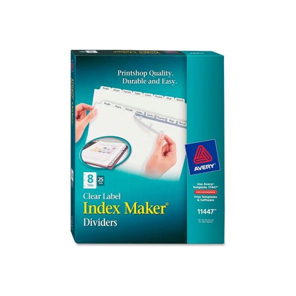 Avery Index Maker Clear Label Divider, Punched, 8.5"x11", 8 Tabs, 25 Sets, White/White