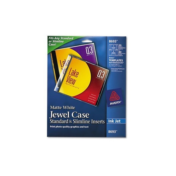Avery, Inkjet Cd/dvd Jewel Case Inserts, Matte White, 20PK (Discontinued)