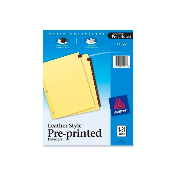 Avery Leather Daily Tab Index Divider, Printed 1 to 31, 8.5"x11", 31 Tabs, Buff/Black