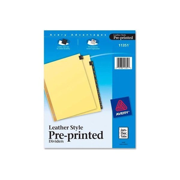 Avery Monthly Gold Line Black Leather Tab Divider, Jan to Dec, 8.5"x11", 12 Tabs, Buff/Black