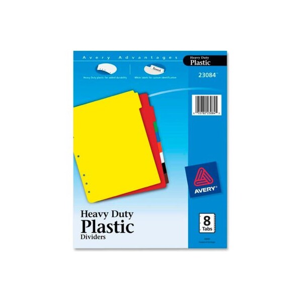Avery Plastic Tab Divider, Blank, 8.5"x11", 8 Tabs, Multicolor/Multicolor