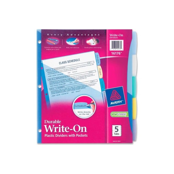 Avery Pocket Divider, Write-on, 8.5"x11", 5 Tabs, Multicolor/Multicolor