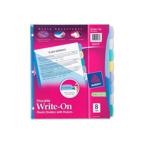 Avery Pocket Divider, Write-on, 8.5"x11", 8 Tabs, Multicolor/Multicolor