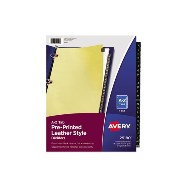Avery, Preprinted Black Leather Tab Dividers W/copper Reinforced Holes, 25-Tab, Letter
