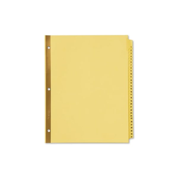 More efficient organization for alphabetical chronological, or numerical sorting. The process becomes simple with handy preprinted tabs to help you get started organizing your paperwork instantly. Gold binding edge is reinforced so you can turn pages secure in the knowledge that your dividers won't tear easily from the binder rings. Easy-to-read black lettering helps you find the right section at a glance. Index Divider Style: Arabic Numeric; Index Divider Size: 11 x 8.5; Punched/Unpunched: 3-Hole Punched; For Use With: Ring Binders.