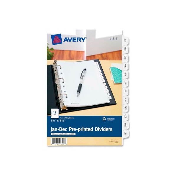 Avery Preprinted Monthly Tab Divider, Printed Jan to Dec, 5.5"x8.5", 12 Tabs, White/Clear