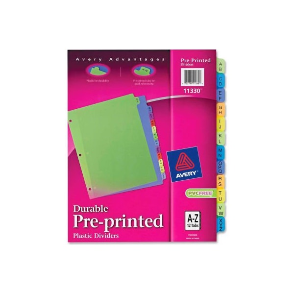 Avery Preprinted Plastic Divider, Printed A to Z, 8.5"x11", 12 Tabs, Yellow/Assorted