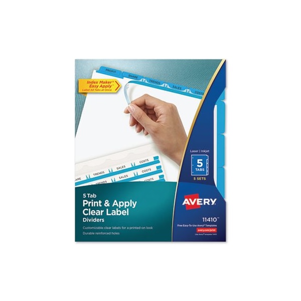 Avery, PRINT AND APPLY INDEX MAKER CLEAR LABEL DIVIDERS, 5 COLOR TABS, LETTER, 5 SETS
