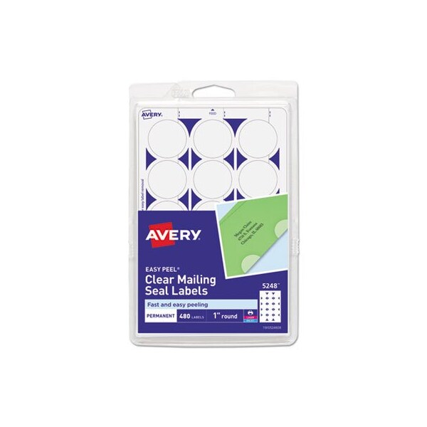 Avery, PRINTABLE MAILING SEALS, 1in DIA., CLEAR, 5248, 32PK