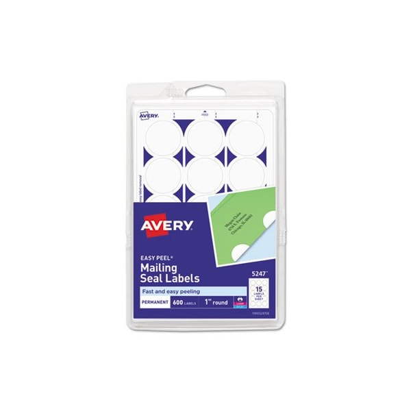 Avery, PRINTABLE MAILING SEALS, 1in DIA., WHITE, 5247, 40PK