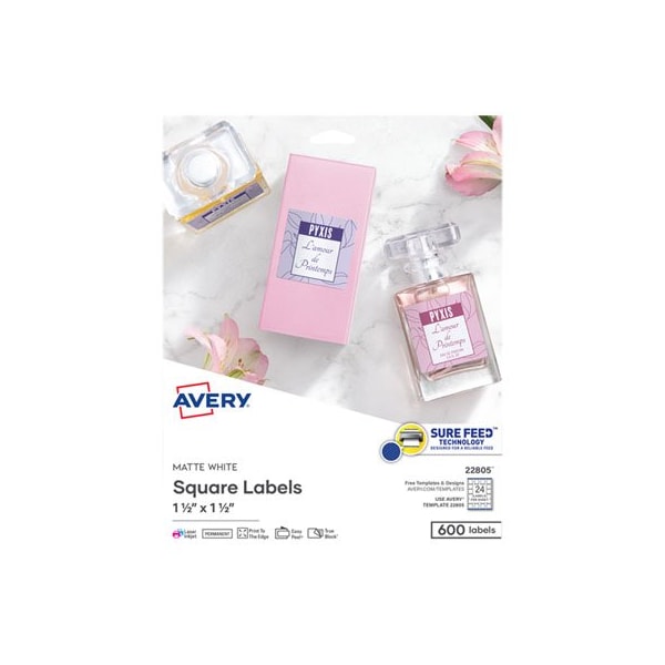 Avery, SQUARE LABELS W/ SURE FEED & TRUEBLOCK, 1 1/2 X 1 1/2, WHITE, 600PK