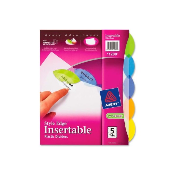 Avery Style Edge Clear Plastic Insertable Divider, 8.5"x11", 5 Tabs, White/Multicolor