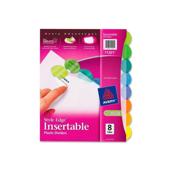 Avery Style Edge Clear Plastic Insertable Divider, 8.5"x11", 8 Tabs, White/Multicolor