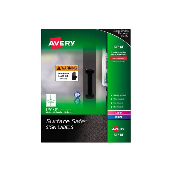 Avery Surface Safe Sign Labels, 3-1/2in x 5in, White, 60/Pack