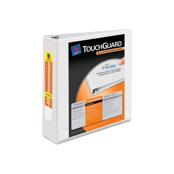 Avery Touchguard Antimicrobial View Binder with Slant Rings, 2" Capacity, White