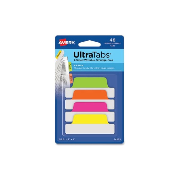 Avery, ULTRA TABS REPOSITIONABLE MARGIN TABS, 1/5-CUT TABS, ASSORTED NEON, 2.5in WIDE, 48PK