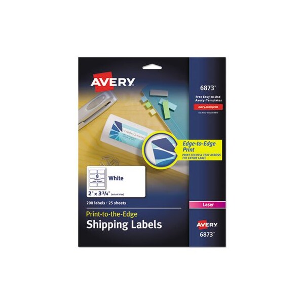Labels can be printed with vivid color and sharp text and are ideal for special mailings, messages, invitations and announcements. Easy to customize with free templates and designs using Avery Design & Print. 8.5in x 11in sheets for color laser and inkjet printers. Color Laser Labels with Sure Feed and Print-to-the-EdgeDesigned for a reliable printer feed and printing colors to the edge of the label. Shape: Rectangular; Label Size - text: 2 x 3.75; Label Colors: White; Color Family: White.
