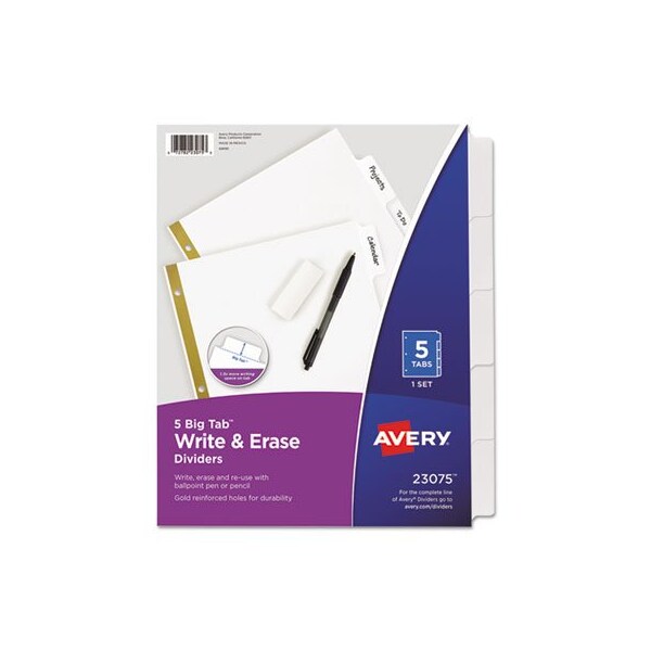 Avery, WRITE & ERASE BIG TAB PAPER DIVIDERS, 5-TAB, WHITE, LETTER