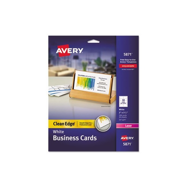 Are you looking for professional business cards without having to pay the professionally printed price? Then our premium Clean Edge Business Cards are exactly what you're looking for. You only have to print as many as you need and they're great as personal contact cards, appointment reminders, coupons, loyalty cards and gift tags as well. You can easily personalize and print on one or both sides using your printer. Use our free templates or pre-designs or come up with your own idea at Avery Design & Print. Stack the deck in your favor with these premium printable cards. Paper Colors: White; Finish: Uncoated; Paper Weight: 91 lb; Card Width: 3.5in.