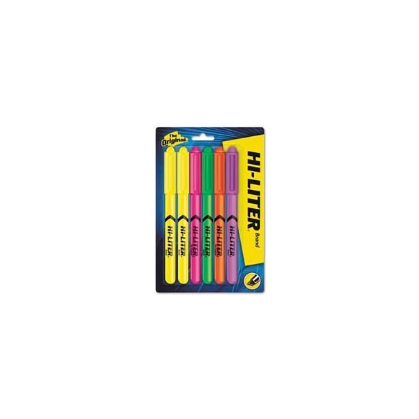 Hi-Liter Pen Style Highlighters, Six-Color Fluorescent Set