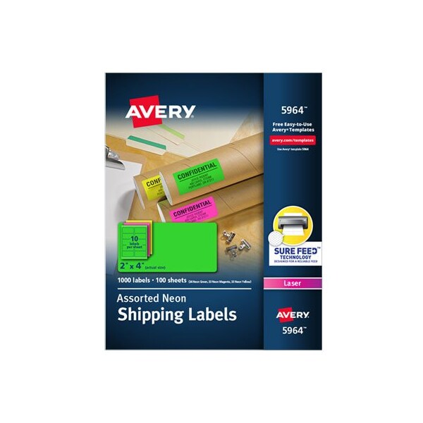 Have something important to say? Customize your white labels with attention-getting images or make your most important messages stand out with high-visibility color labels. Ideal for announcements, priority messages, addressing, color-coding, identification/warning labels and more! Easy to customize with free templates from Avery Design & Print. For laser printers. Now you've got their attention. Laser Permanent Neon RectanglesGet noticed with eye-catching color. Shape: Rectangular; Label Size - text: 2 x 4; Label Colors: Assorted; Color Family: Multicolor.